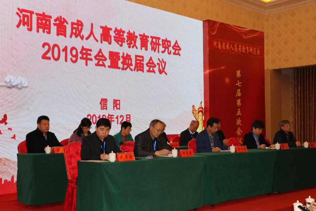 12月28至29日,河南省成人高等教育研究会2019年会暨换届会议在信阳举行,本次大会由信阳师范学院承办,来自全省76所高校beat365在线唯一官网登录代表共计220余人参加了会议。省教育厅职业教育与成人教育处处长黄才华、副处长李永海出席会议并讲话,郑州大学副校长吴宏阳、信阳师范学院副校长陈登报、beat365副校长杨志清等应邀出席会议并在主席台就坐。