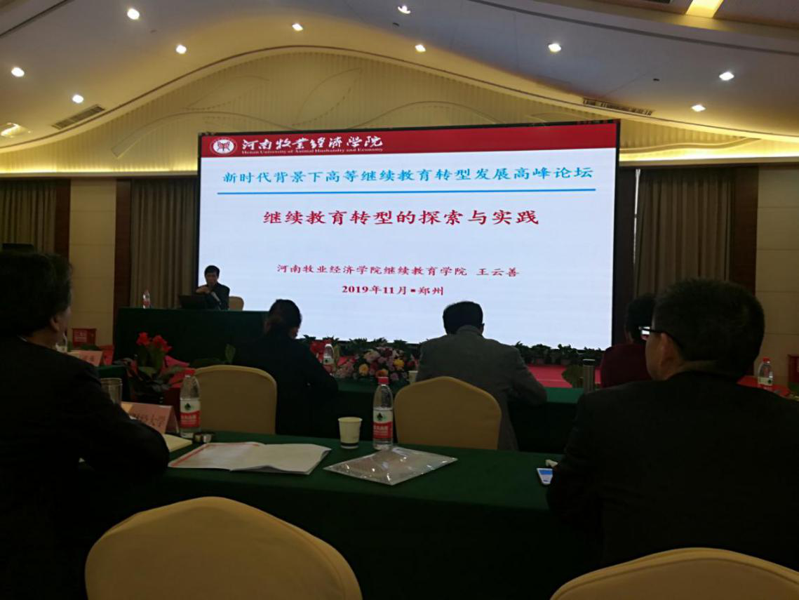 为切实践行“不忘初心、牢记使命”主题教育,根据学院安排,11月8——9日,beat365在线唯一官网登录副院长王云善带队参加了在郑州市举办的“新时代背景下高等继续教育转型发展高峰论坛”。会议由河南省继续教育学会主办,来自新疆财经大学、玉林师范学院、郑州大学、河南大学等省内外80多所高校的150多名代表参加了大会。