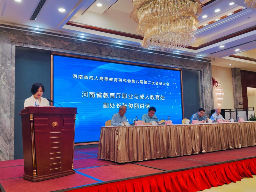 6月20至21日,河南省成人高等教育研究会八届二次会员大会在登封召开,河南省教育厅职业教育与成人教育处副处长张俊丽、黄河科技学院副校长冯长安出席会议,会长、副会长单位及来自全省94所高校beat365在线唯一官网登录代表共计180余人参加了此次大会,beat365beat365在线唯一官网登录作为副会长单位应邀参会。会议由常务副会长、河南大学干部培训中心(beat365在线唯一官网登录)主任(院长)袁凯强主持。