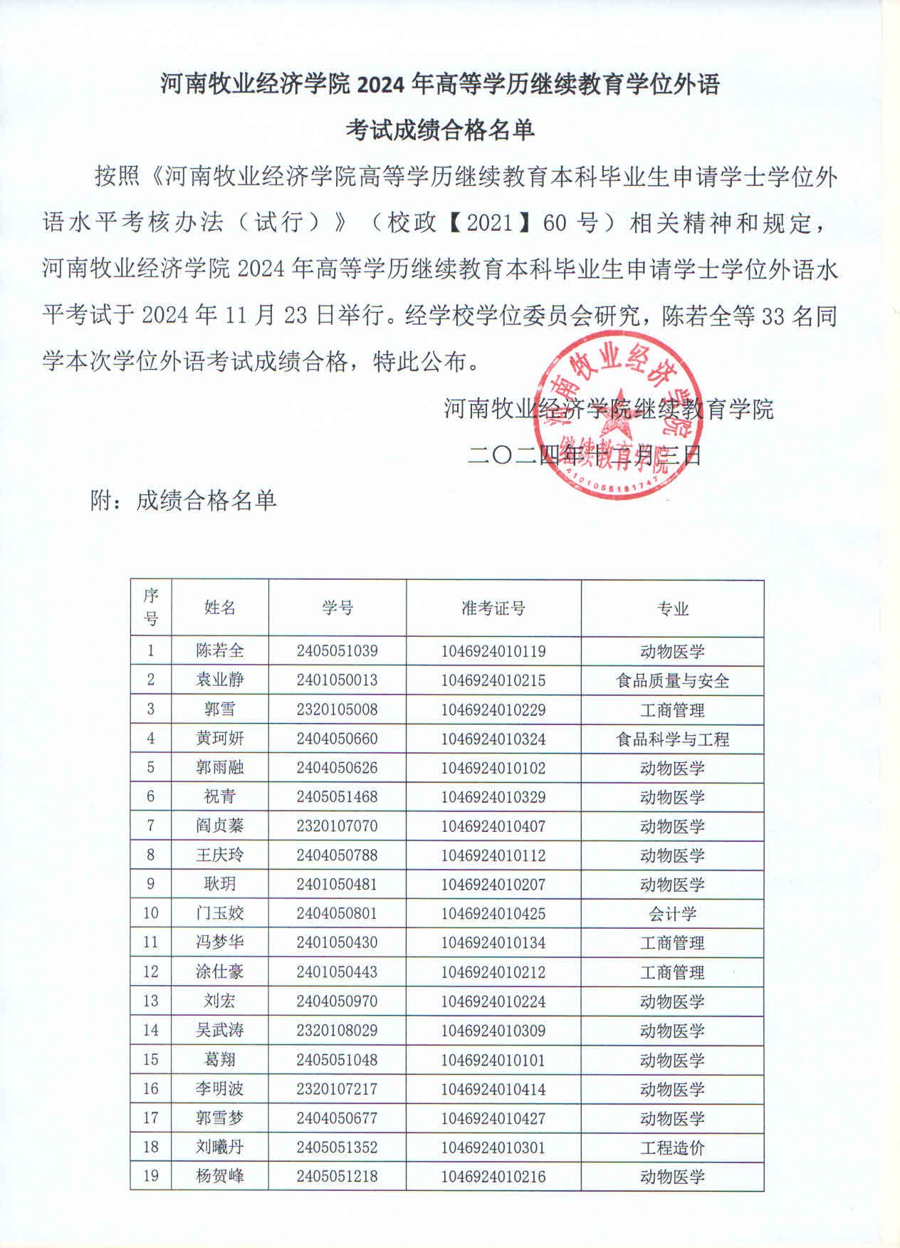 beat365在线唯一官网登录2024年高等学历继续教育学位外语考试成绩合格名单