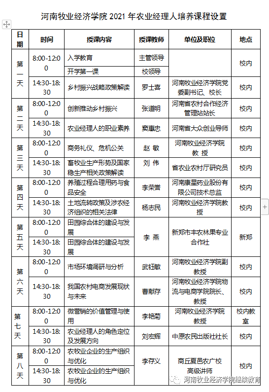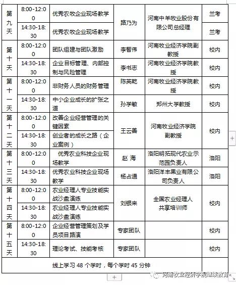 1、培训内容涵盖农业经理人基本素养、涉农相关法律与组织责任、市场营销、生产管理、人力资源管理、采购与库存管理、财务管理、目标管理、实训模拟等九大模块,详见培训方案(附后)