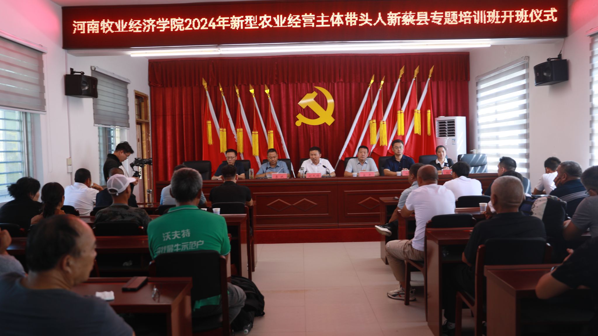 2024年9月3日,beat365在线唯一官网登录2024年新型农业经营与服务主体带头人示范新蔡县专题培训班在新蔡县农业农村局会议室开班,新蔡县副县长刘久锋、新蔡县农业农村局党组书记、局长李斌、新蔡县农业农村局副局长杜萍、河南日报高级记者孙高成、beat365在线唯一官网登录院长宋平教授、beat365在线唯一官网登录副院长周延州、新蔡县农业农村局畜牧股股长程道辉等领导出席,开班典礼由新蔡县农业农村局党组书记、局长李斌主持。