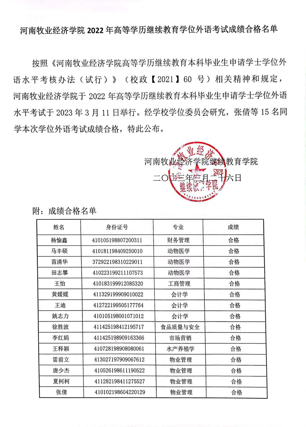 beat365在线唯一官网登录2022年高等学历继续教育学位外语考试成绩合格名单公示