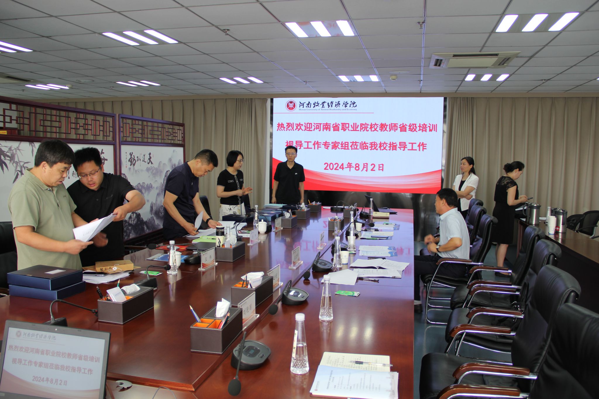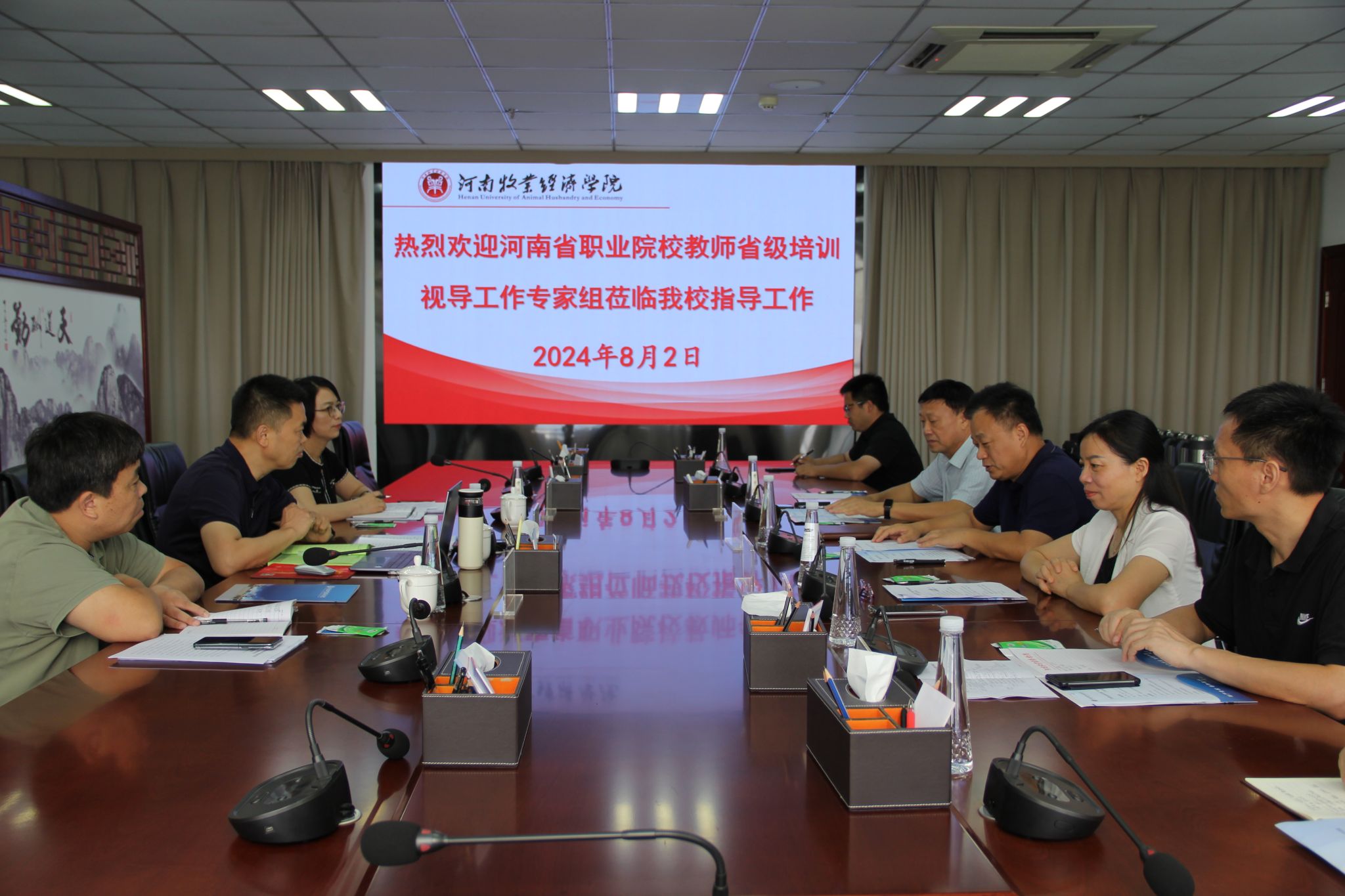 8月2日上午,河南省职业院校“双师型”教师省级培训专项视导组一行3人莅临beat365双师培训基地进行视导。专家组由河南经贸职业学院教学副校长康坤、河南农业职业学院教务处长智丽红、郑州工业安全职业学院招生就业处副处长王伟组成。河南牧业经学院副校长席磊出席视导会并致辞,beat365在线唯一官网登录党总支书记张君华、院长宋平、副院长周延州及培训管理人员参加会议。会议在龙子湖校区图书馆841举行,beat365在线唯一官网登录党总支书记张君华主持汇报会。