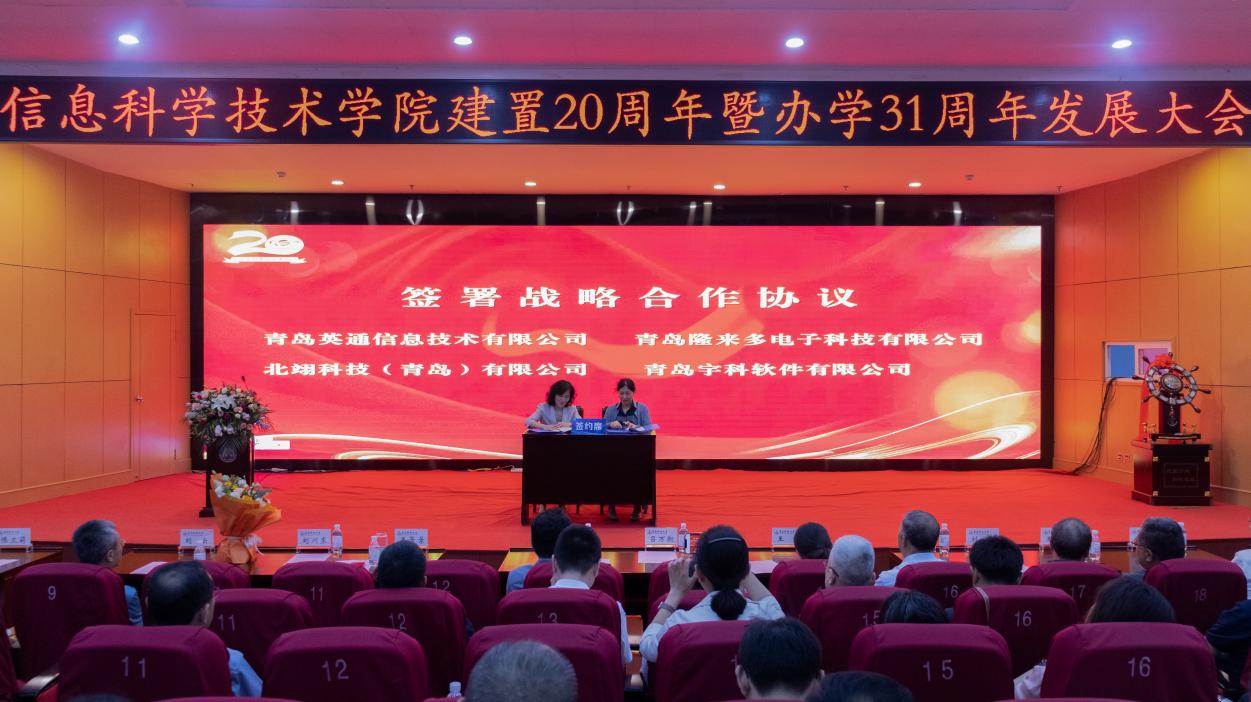 pg娱乐电子游戏官网入口办学以来与各级党政机关部门、企事业单位、行业协会等建立了多种形式的合作与交流,并产生了多项合作成果。为了进一步提升合作层次,深化合作内涵,在大会现场,pg娱乐与青岛英通信息技术有限公司、青岛隆来多电子科技有限公司、北翊科技(青岛)有限公司、青岛宇科软件有限公司,分别签订共建行业学院的战略合作协议。